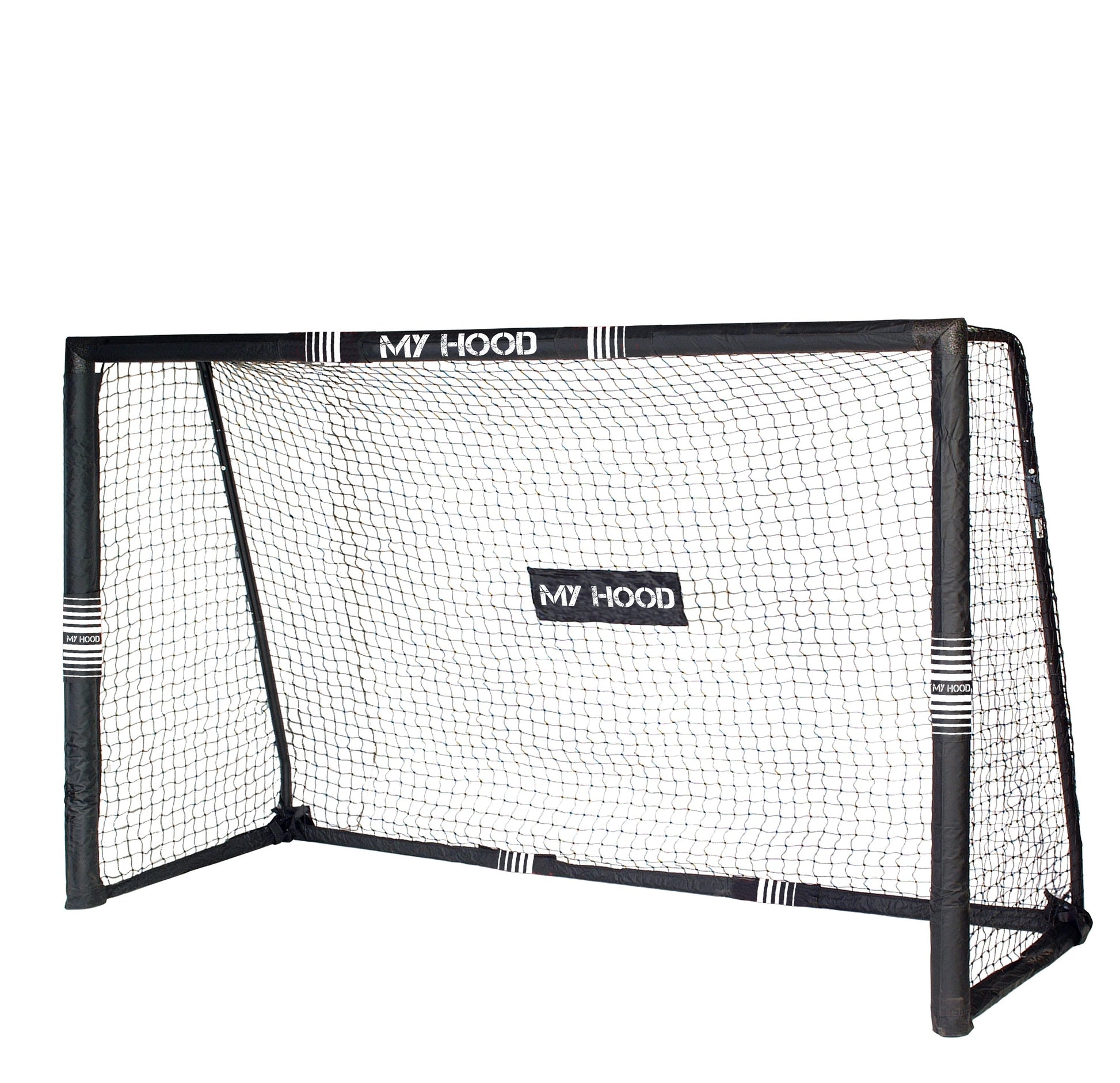 Et fodboldmål i stål fra My Hood i en rigtig god kvalitet. En robust stålramme på Ø32 mm sikrer at målet står solidt på plænen, og den flotte sorte pulverlakering beskytter mod rust. Målets stolper og overligger har som noget helt nyt et skumovertæk som beskytter mod stød. Nettet er i en vejrbestandig kvalitet med masker på kun 45 mm.. Størrelse: 300 x 200 x 120 cm. Ramme: Ø32 mm. Materiale: Pulverlakeret stål. Kraftigt PE-net. Vandtæt polyester overtræk med skum til stolpe og overlægger. Medfølger 5 pløkker til fastgørelse. Vægt: 15 kg. Gratis fragt til pakkeshop. Få det bragt hjem for kun kr. 56.-