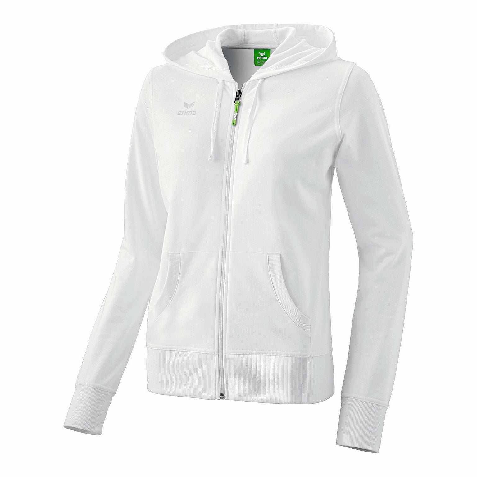 Erima figursyet damehættejakke i 100 % bomuld. En klassisk afslappet hættejakke med ærme og sømafslutning og god kvalitet lynlås.