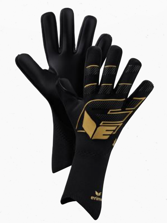 ERIMA målmandshandsker i topkvalitet med 4 mm Hypersoft latex (tysk produceret), Negative Cut, 3D Gel Punch Zone, strapless konstruktion, åndbar knit backhand samt thumb wrap og extended palm.