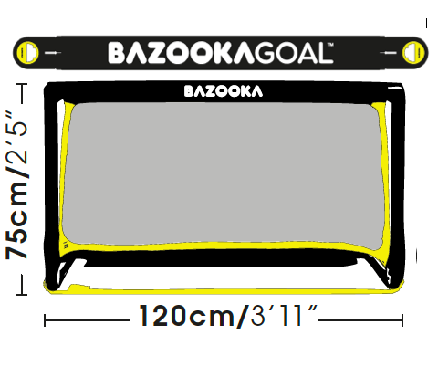 Det vejer kun 5 kg, er nemt at transportere og kan både bæres over skulderen eller klappes sammen på få sekunder. BazookaGoal er ekstremt slidstærkt, fremstillet i polycarbonat, PVC og nylonkompositter, og fungerer perfekt på både kunstgræs, græs, i haven, hallen, på gaden eller stranden.