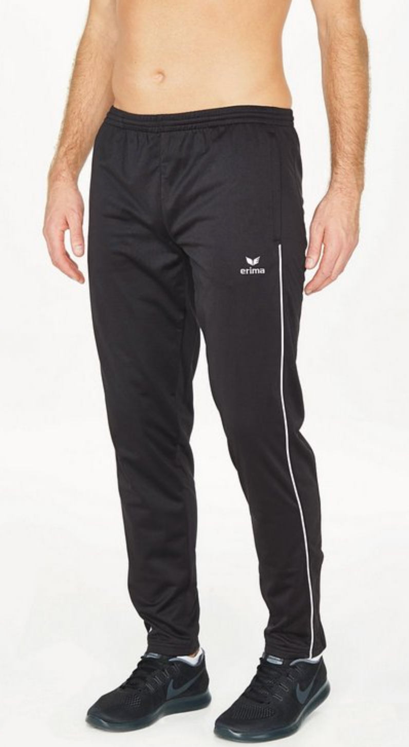 Populær Erima træningsbukser med tætsiddende benafslutning med lynlås. En slim model med lynlåslommer i siden. Disse Erima Træningsbukser i 100 % polyester er slidstærke til spilleren der træner meget.