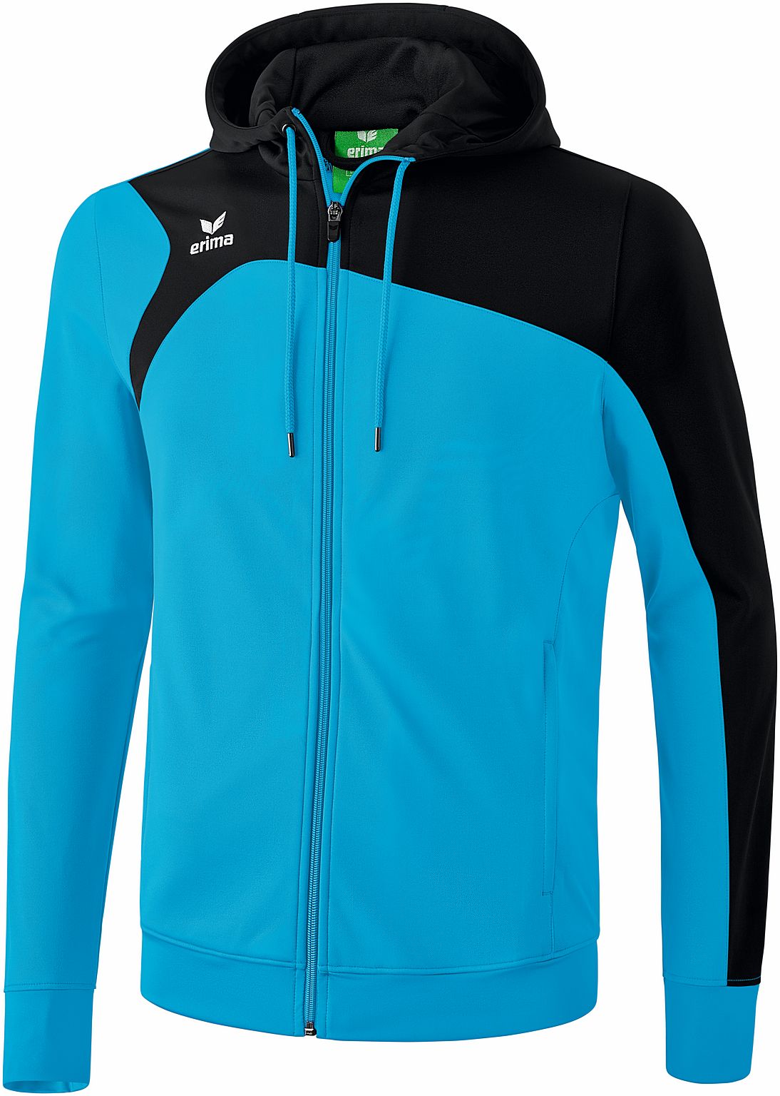 Erima træningstrøje med lang lynlås, hætte og klublogo. Smart overdel i moderigtige detaljer med sidelommer med lynlås. Hætte med snor. Børnestørrelser uden snor. 100 % polyester.