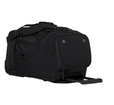 Sportstaske med trolleyfunktion og hjul. ERIMA Trolleybag er den perfekte kombination af stil, funktionalitet og holdbarhed. Tasken er fremstillet i højkvalitets ripstop-materiale, der effektivt forhindrer, at stoffet flænger, og den elegante sorte farve giver et moderne og professionelt udtryk både på rejser og til sport. Den stærke bund i 1680D polyester sikrer ekstra slidstyrke, så du kan stole på, at tasken holder til intensiv brug. Med et rummeligt hovedrum, en praktisk frontlomme med lynlås samt en sidelomme med vådrum og ventilationshuller er organiseringen enkel og effektiv. Indvendigt finder du en integreret mesh-lomme til værdigenstande, hvilket gør tasken ideel som både rejsetaske på hjul og sportstaske med smarte rum.