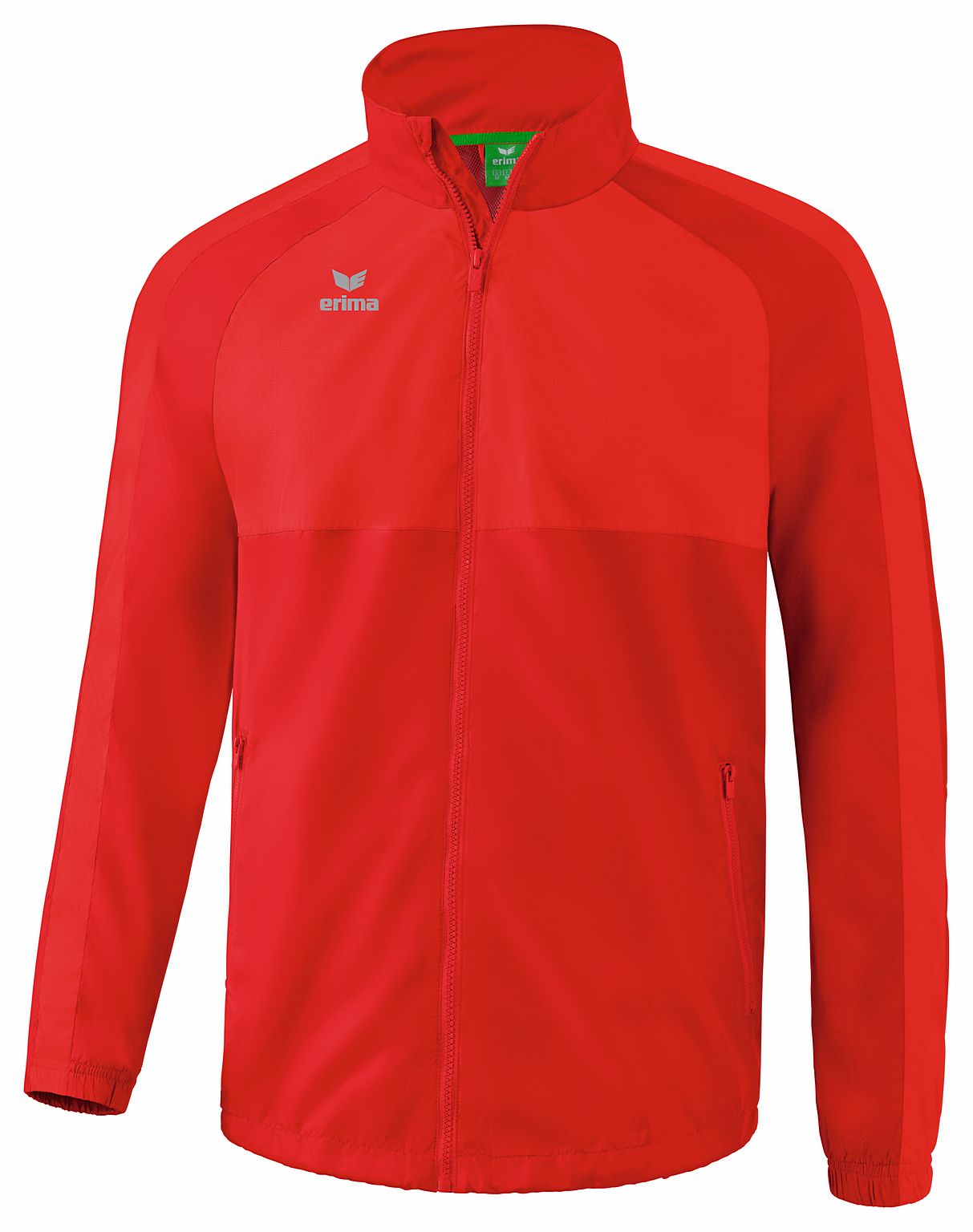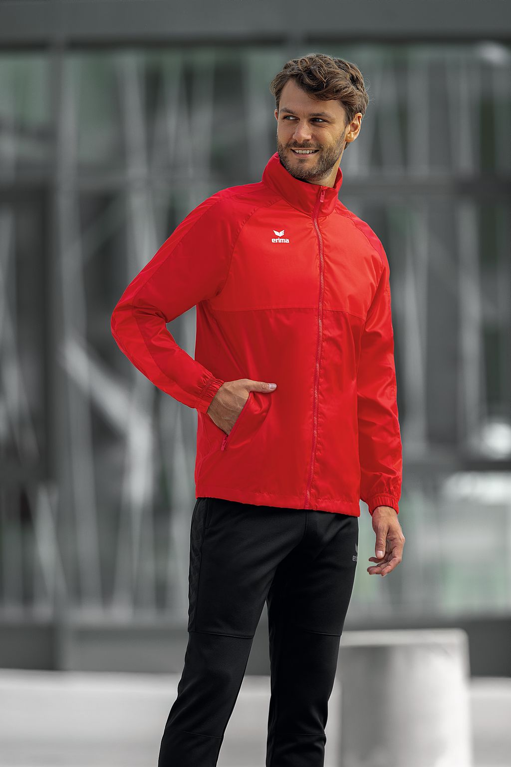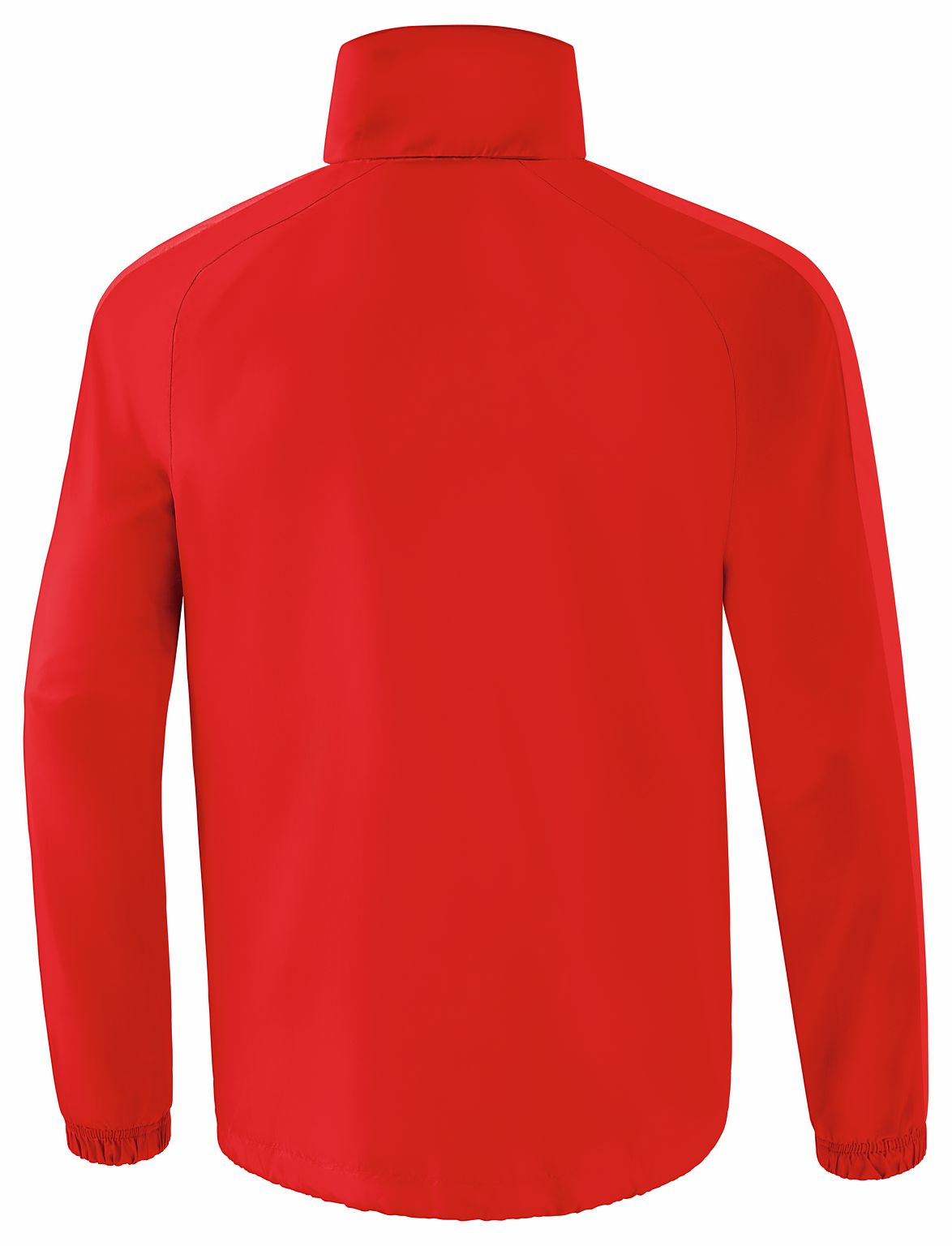 Erima Teamline regn- og vindjakke med integreret hætte i kraven. De sammensvejsede hovedsømme giver optimal beskyttelse mod vind og vejr. Optimal finish med stiklommer i siden med lynlås, sømafslutning med elastisk linning. Let og god at bevæge sig i. Kan også benyttes som fodboldmålmandens træningsjakke da det er en meget slidstærk jakke der holder vind og vand ude. Vandtryk 1200 mm. 100 % polyamid med inderfoer af 100 % polyester. Fås i 5 forskellige farvevarianter. Sort, blå, rød, grøn og new navy